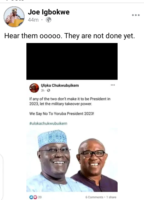 In the light of the following happenings, the former spokesperson and Chieftain of the All Progressive Congress Party (APC) Lagos branch Joe Igbokwe took to his official Facebook page to react after a man said that Nigerians should say no to a Yoruba President next year.