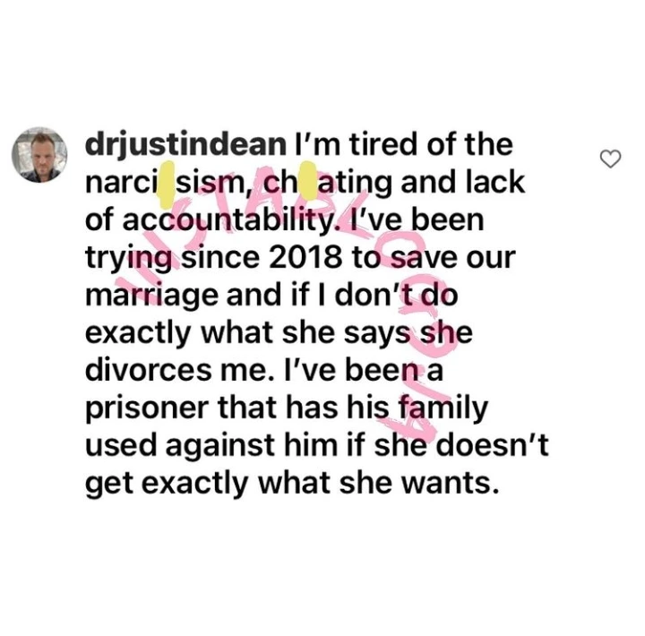 According to Justin Dean, these are the reasons why he wants a divorce.
