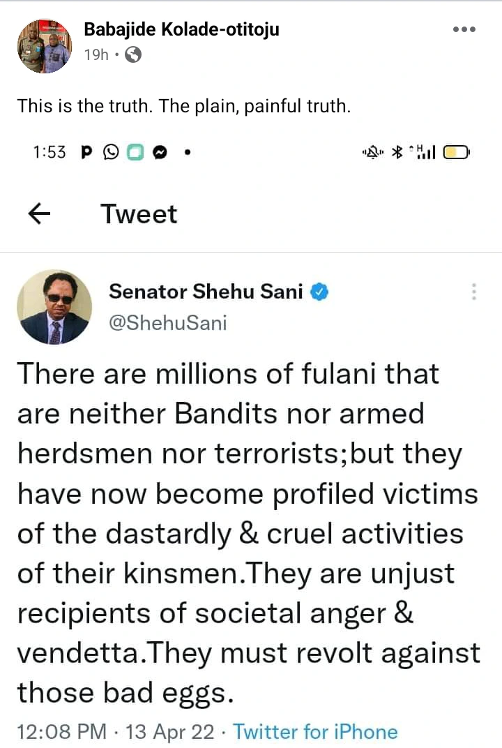 After Senator Shehu Sani shared the above statements, Babajide Kolade-Otitoju reacted to what he said.