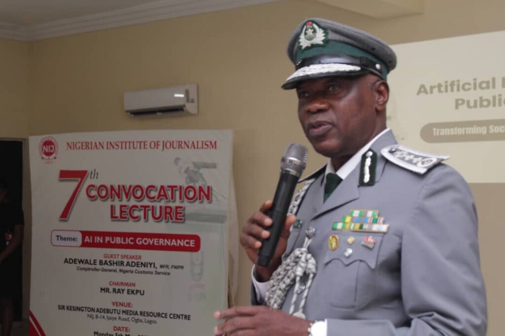 The Comptroller-General of Customs, Bashir Adewale Adeniyi MFR, delivering convocation lecture on “AI in Public Governance” at NIJ, Ogba, Lagos