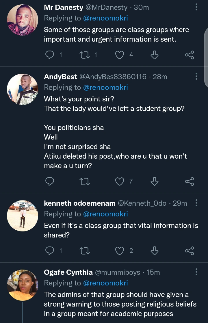 He said “Going forward, once you note that religion has infiltrated WhatsApp fora that is not church or mosque based, quietly exit the fora. That is why I am not even on any WhatsApp fora. They can provoke you into unnecessary controversies and alter your positive energy!”