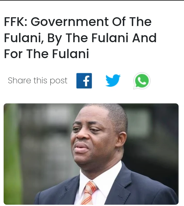 In the wake of the farmers/herders crisis in the Southwest in early 2021, FFK had accused the President Muhammadu Buhari regime of exhibiting nepotistic tendencies by turning a blind eye to the killing of farmers by suspected Fulani herders in the region back then.