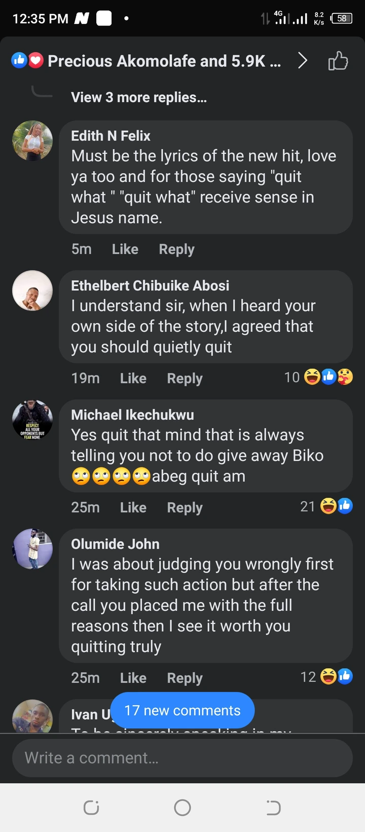 3. “The truth is many at times in our head…we believe people want to know and must know everything we do or decisions we make in our personal space , but that’s not true. There are public figures out there who do their thing with no explanation. If you don’t tell people , they won’t know. Except it has something to do with people and not your private life. But , I hope you are not quitting from supporting Obi, music or life shaaa. Just do your thing…if it is something serious you are passing through in life, talk to someone. Life can only get better”