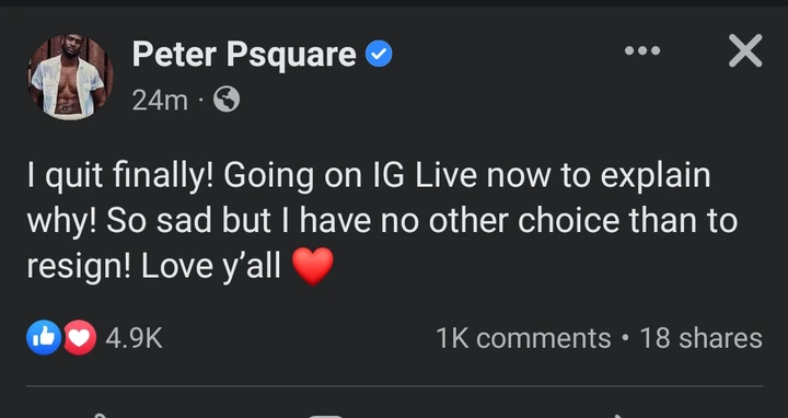 Peter Okoye and Paul Okoye are popular Nigerian music duo, they are popularly known as Psquare, one of them has caused reactions on social, Peter said: