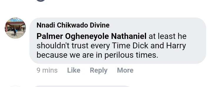 Nnadi Chikwado Divine – “At least he shouldn’t trust every Dick and Harry because we are in perilous times”