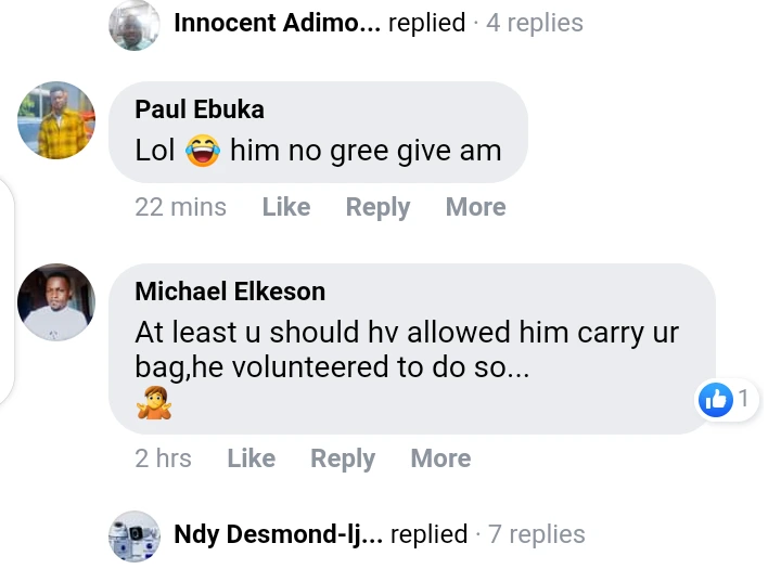 Michael Elkeson – “At least you should have allowed him to carry your bag, he volunteered to do so”