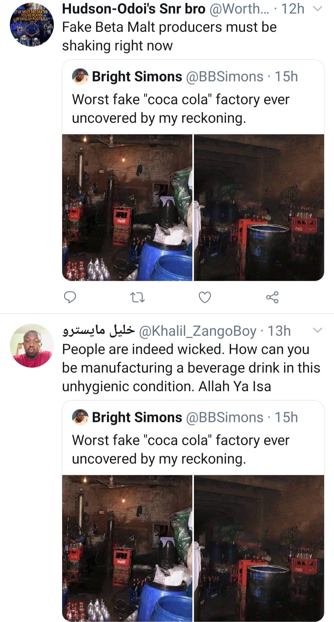 Netizen reacts as factory producing fake soft drinks uncovered