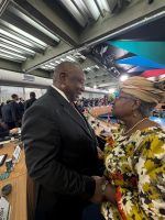 Okonjo-Iweala and President Ramaphosa of South Africa at BRICS Summit in Brazil
