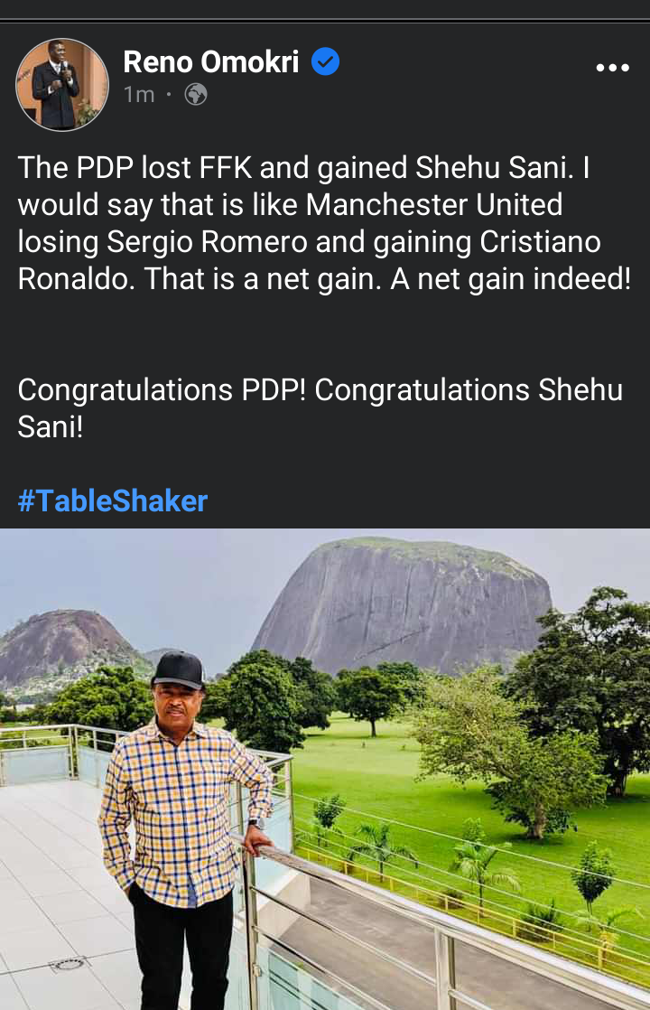 “PDP lost Chief Fani-Kayode and gained Shehu Sani, Congratulations PDP” Reno Omokri reacts