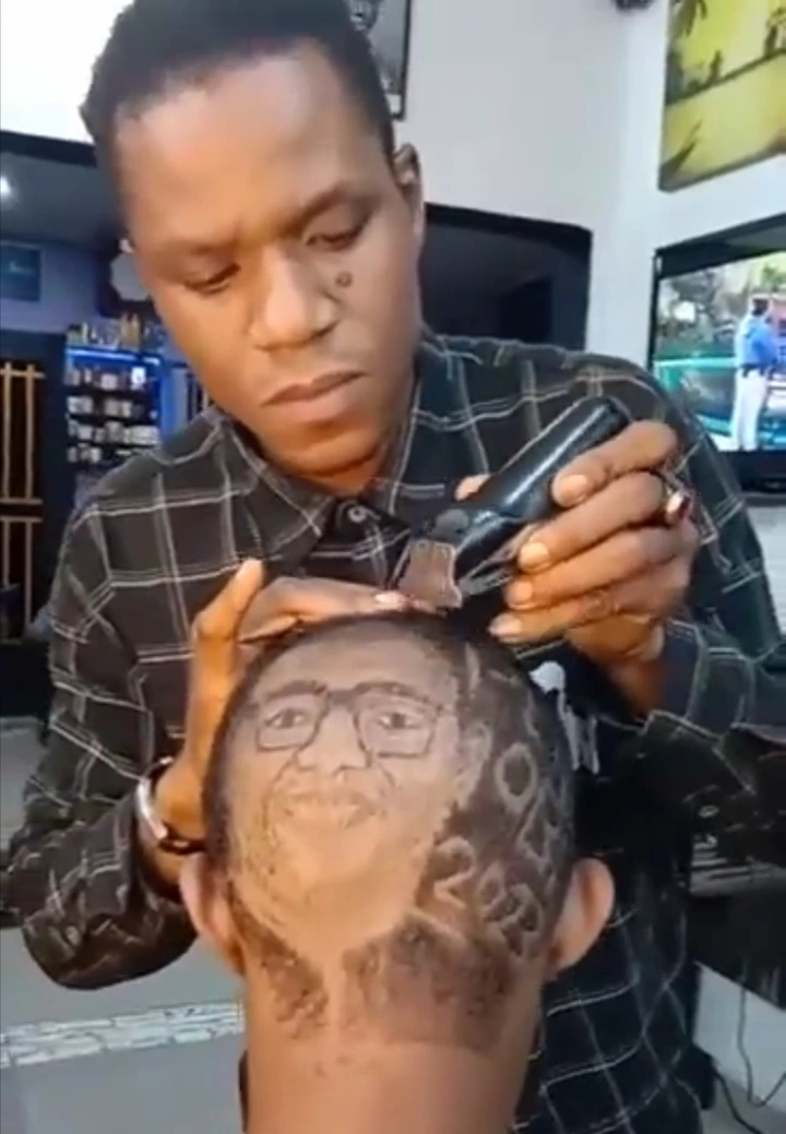 In the viral video, a barber was seen as he carved the face of Peter Obi on the young man’s head, with the inscription – “Peter Obi 2023.”