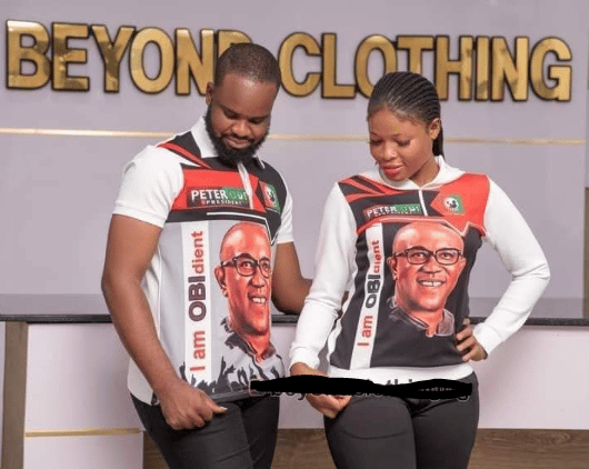 To show solidarity for their preferred candidate, the zealous couple and staunch supporters of Peter Obi rocked an outfit of the former governor for their pre-wedding photo.