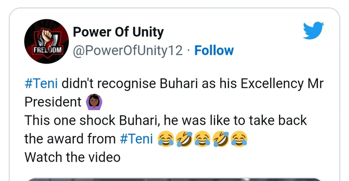 Some Nigerians have said that her reaction was rude. After receiving the award of the Member of the Order of the Niger, MON, Teni walked away from President Buhari without paying any obeisance. Adamu Garba, a former presidential aspirant while reacting to her action disclosed that whoever disrespects the office of the President is an illegitimate and ungrateful Nigerian.