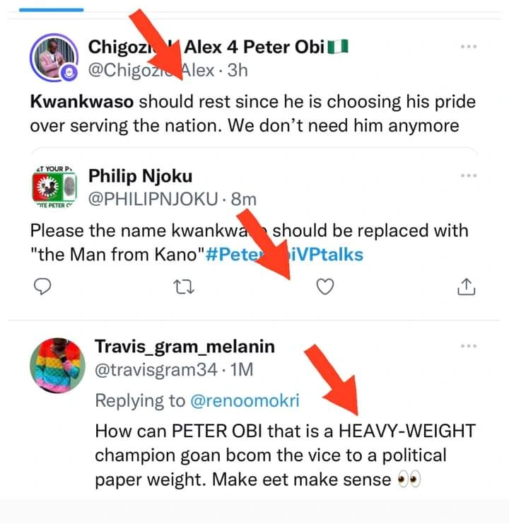 Earlier today, it was reported that Rabiu Kwankwaso made it known that he could not be a VP to Peter Obi because he is more qualified than him and if the NNPP and Labour Party merger must happen, Peter Obi will be the one to be his running mate.However, Kwankwaso’s speech elicited a wide range of reactions, prompting many Peter Obi supporters to react differently, with some calling him a paper weight.