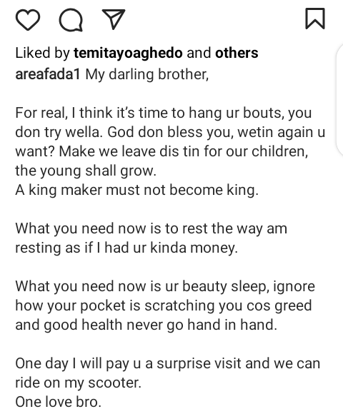The legendary music star who advised the Nigerian politician through his official Instagram page, stated that Bola Ahmed Tinubu has really tried for the country, adding that it is time for him to let the youths take over the office of the presidency.