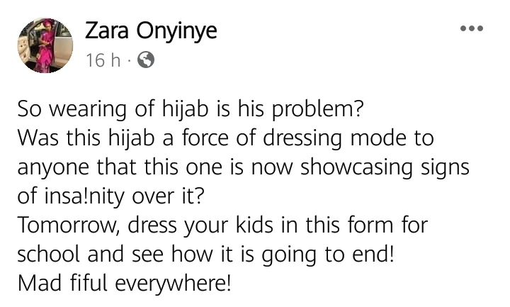 According to Zara, the lawyers charade was very unnecessary because the Supreme Court’s ruling never forced the hijab dressing mode on anyone. She reacted thus: